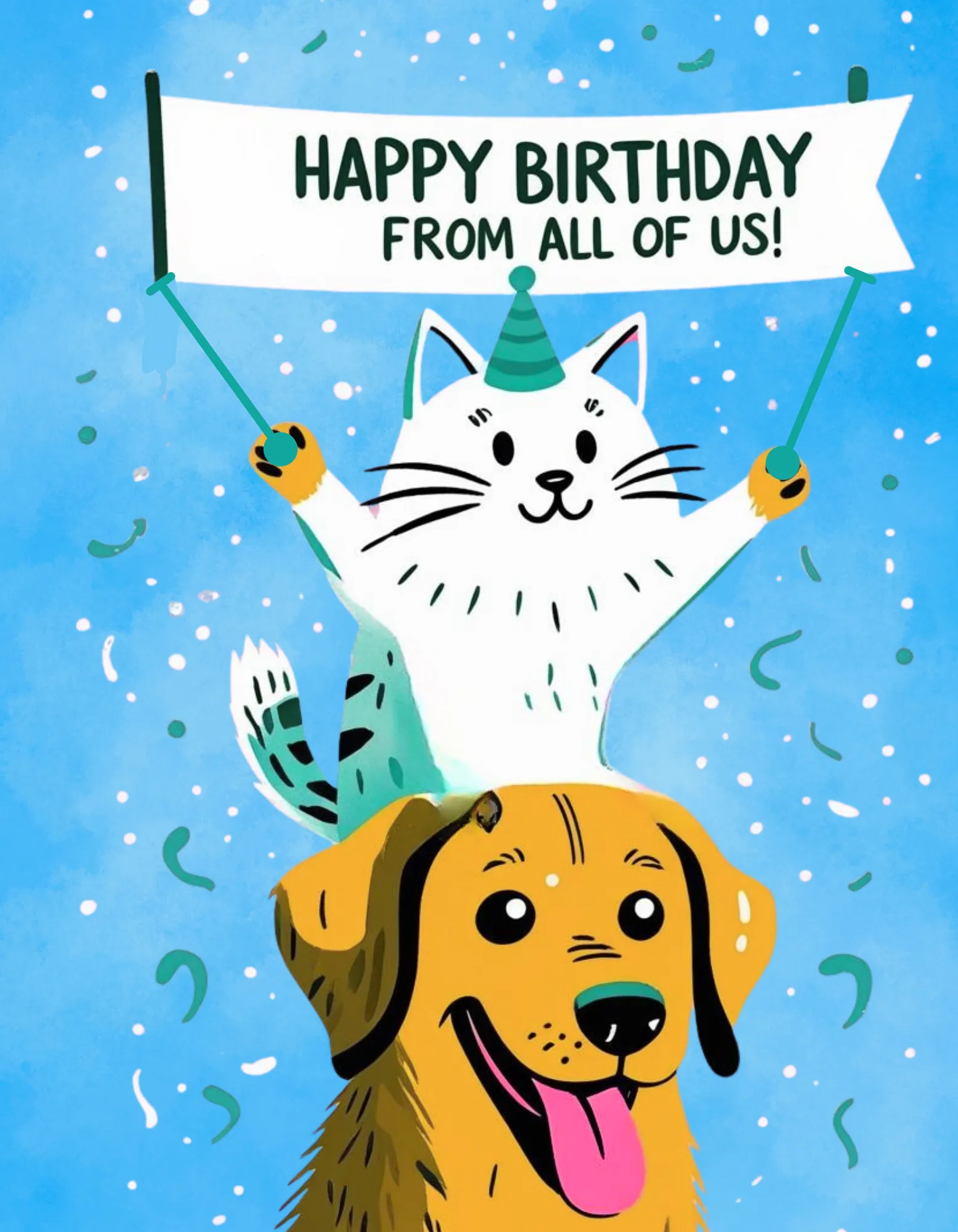 happy-birthday-dog-and-cat-with-banner | Group Card — GatheredCards | GatheredCards