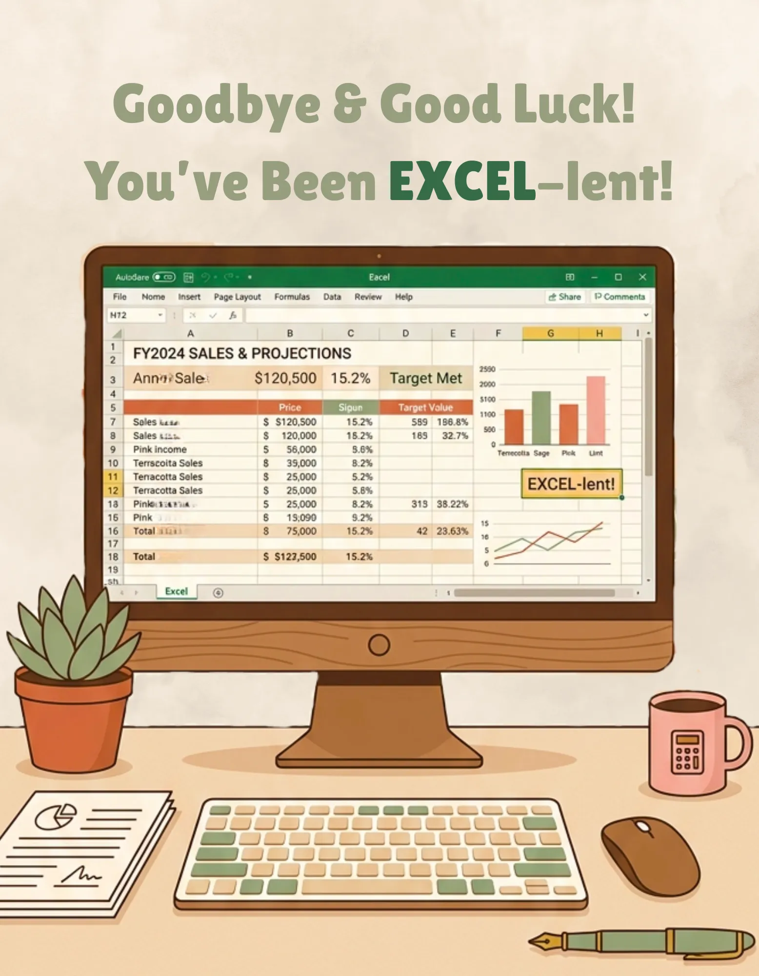 goodbye-and-good-luck-youve-been-excel-lent-group-card-for-teams-for-accountants-bankers-and-engineers-with-an-excel-joke | Group Card — GatheredCards | GatheredCards