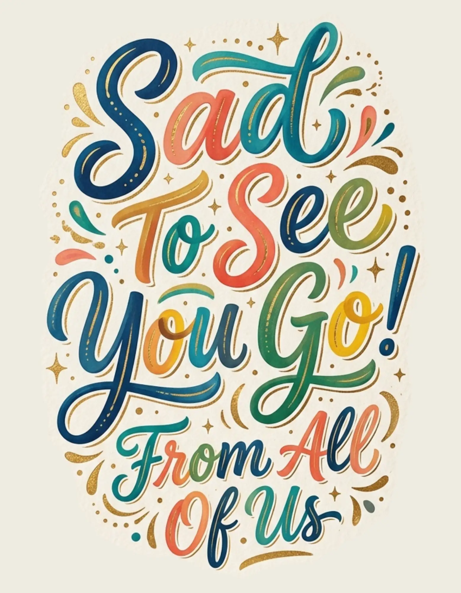 sad-to-see-you-go-from-all-of-us-green-blue-and-red-card | Group Card — GatheredCards | GatheredCards