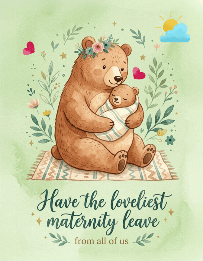 have-the-loveliest-maternity-leave-mother-bear-and-baby-bear-green-group-card | Group Card — GatheredCards | GatheredCards