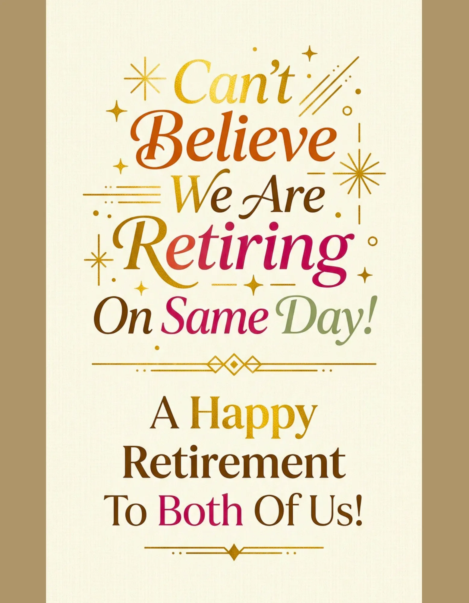 cant-believe-we-are-retiring-on-same-day-a-happy-retirement-to-both-of-us-minimalist-text-card | Group Card — GatheredCards | GatheredCards