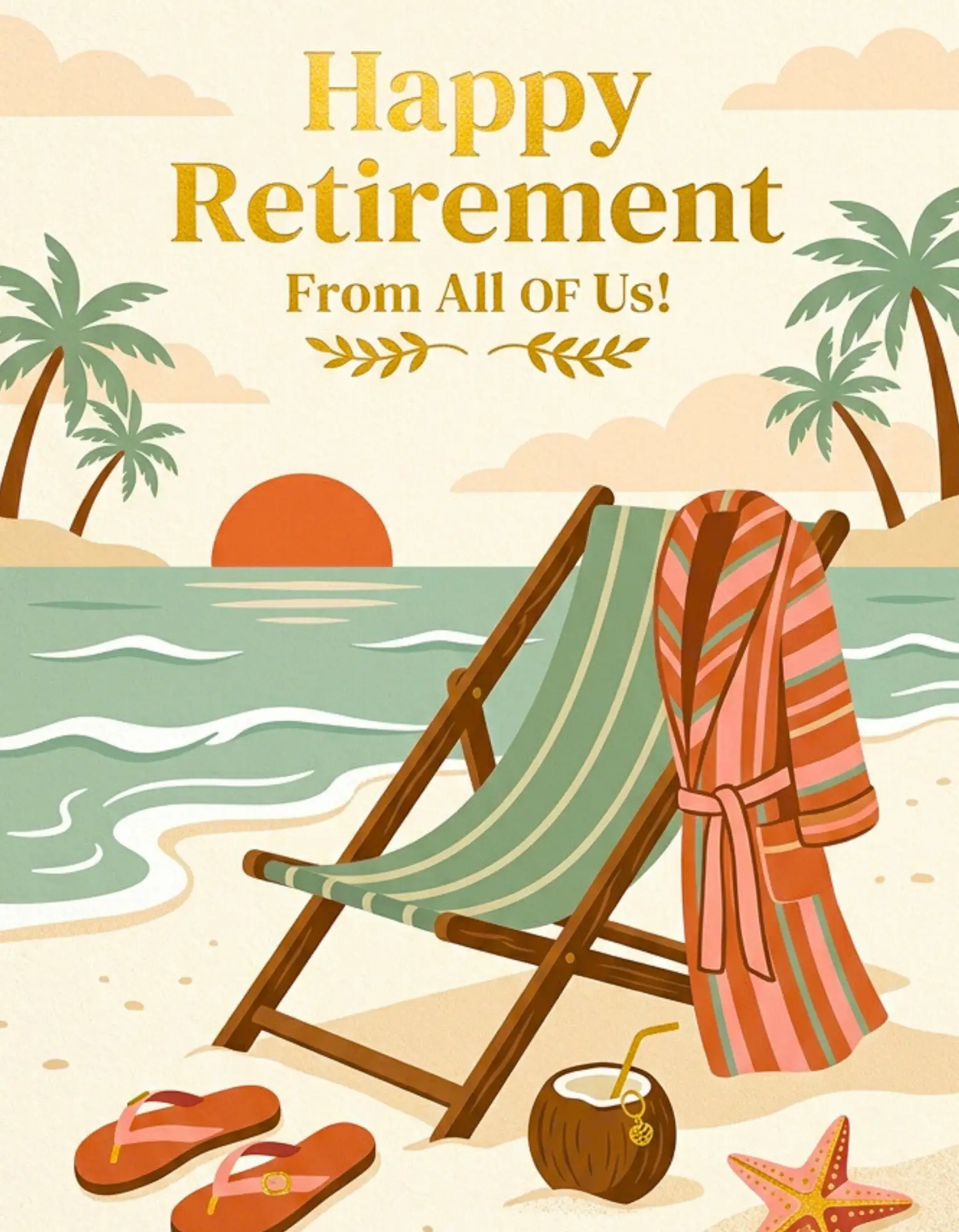 happy-retirement-from-all-of-us-on-the-tropical-beach-minimalist-classic-card | Group Card — GatheredCards | GatheredCards