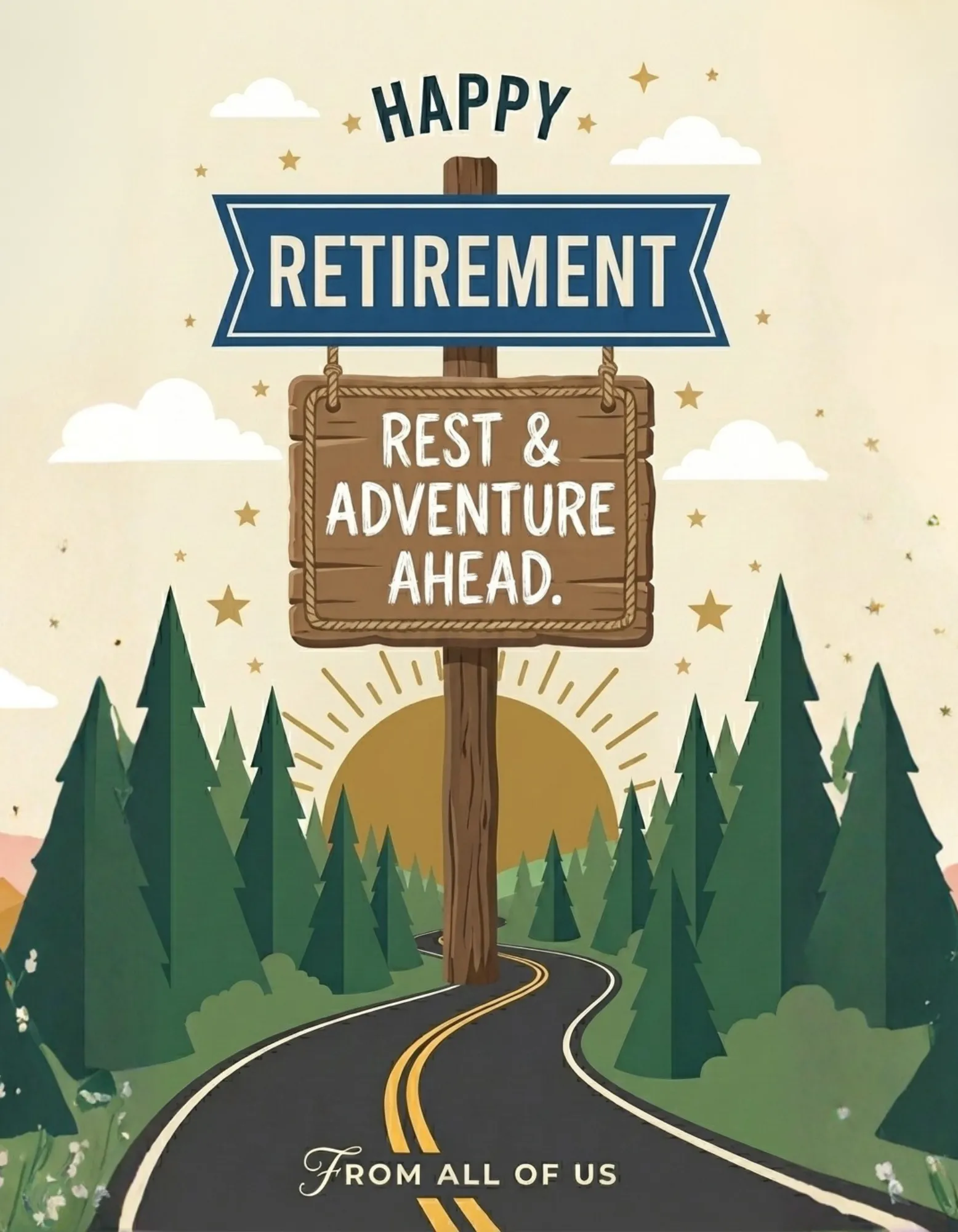 happy-retirement-rest-and-adventure-ahead-road-and-sign | Group Card — GatheredCards | GatheredCards